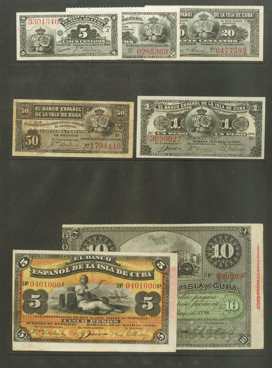 Set of 7 banknotes of the Spanish Bank of the Island of Cuba in different qualities and various issues (5 and 10 pesos with curious numbers). TO EXAMINE.