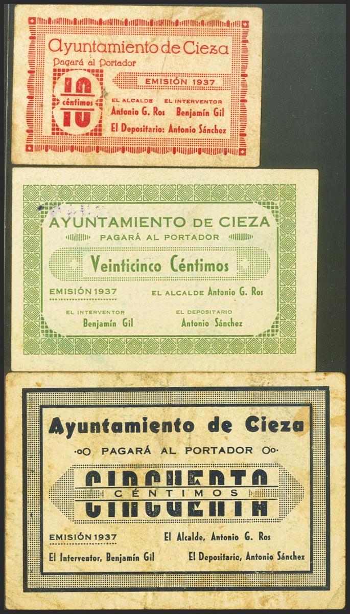 CIEZA (MURCIA). 10 Cents, 25 Cents and 50 Cents. (González: 1964/66). Rare complete series. Extremely Fine/ Very Fine.