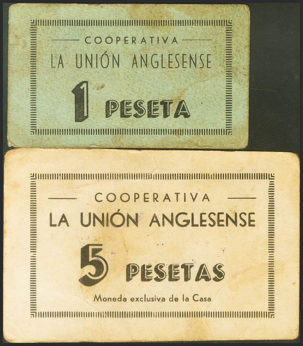 ANGLES (GERONA). 1 pesetas and 5 pesetas. (1937ca). (Gonzalez: 6306/07). Good Very Fine.
