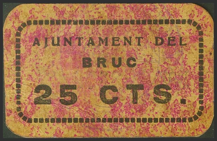 THE BRUCH (BARCELONA). 25 cents. (1937ca). (Gonzalez: 7205). Rare. Extremely Fine.