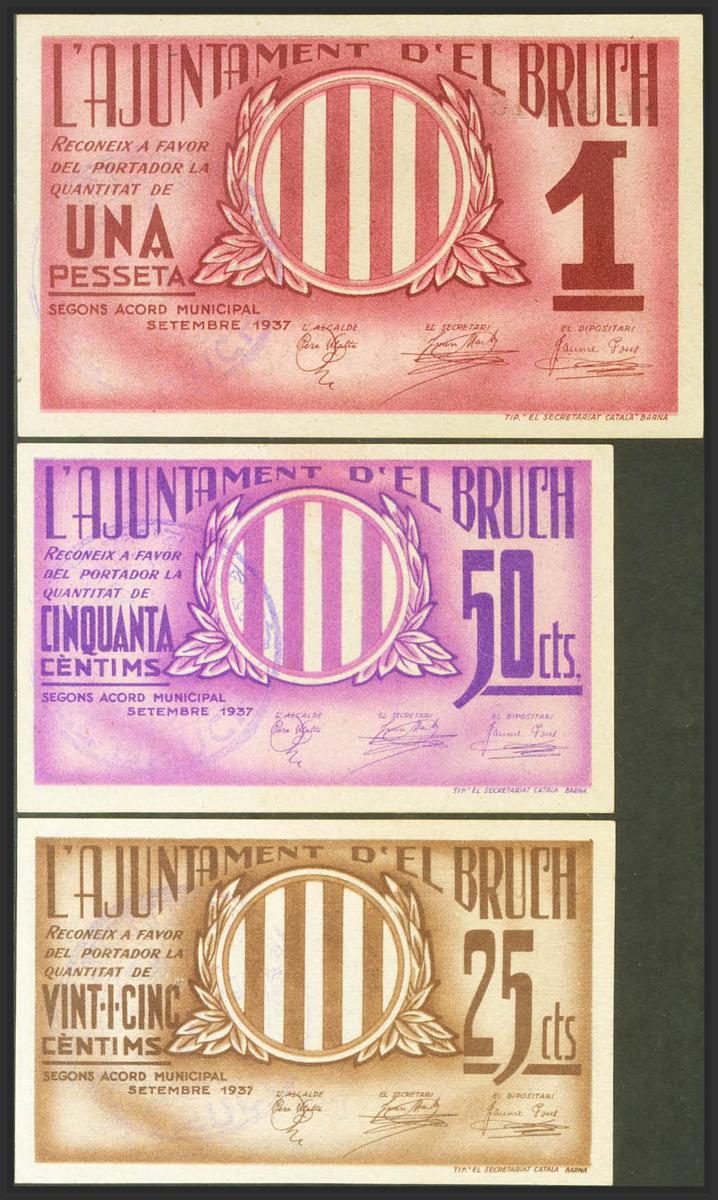 THE BRUCH (BARCELONA). 25 Cents, 50 Cents and 1 Peseta. (1937ca). (González: 7206/08). Complete series. Almost Uncirculated.