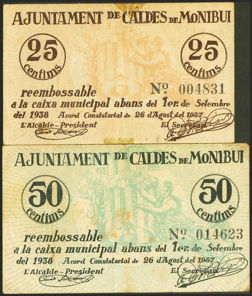 CALDES DE MONTBUI (BARCELONA). 25 Cents and 50 Cents. (González: 7283/84). Complete series. Very Fine.