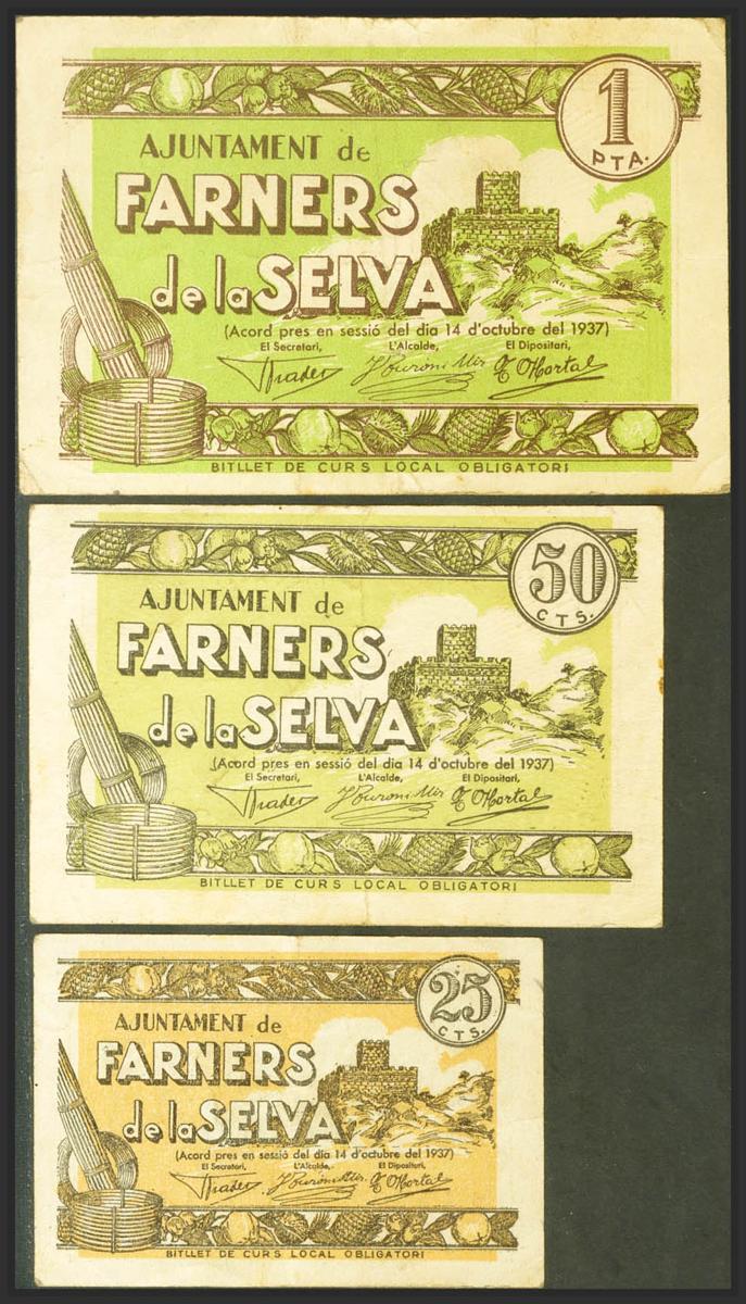 FARNERS OF THE JUNGLE (TARRAGONA). 25 Cents, 50 Cents and 1 Peseta. October 14, 1937. (González: 7830/32). Complete series. Very Fine/ Good Very Fine.