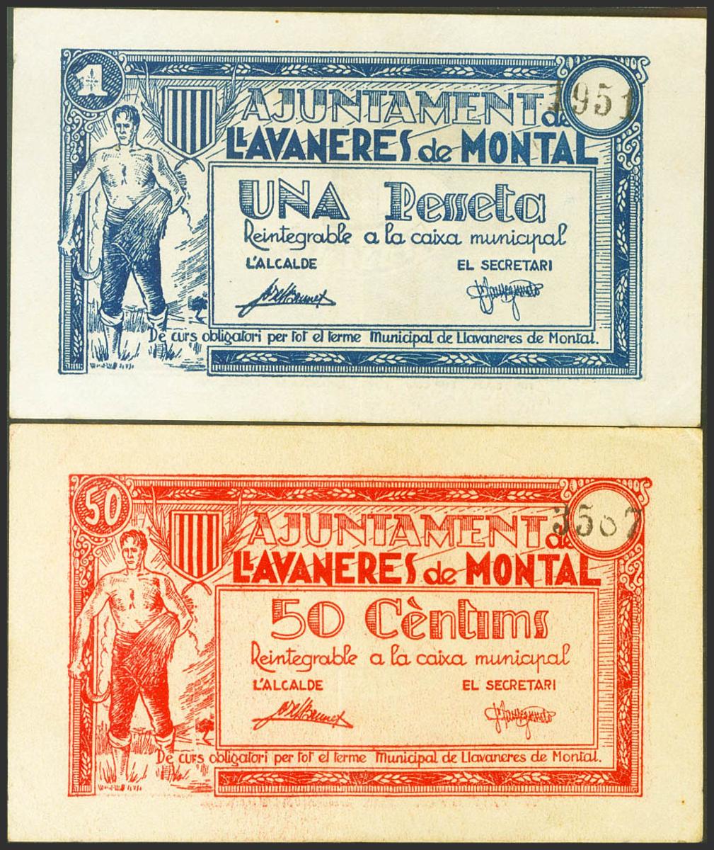LLAVANERES DE MONTALT (BARCELONA). 50 Cents and 1 Peseta. (1937ca). (González: 8351/52). Rare complete series. Extremely Fine.