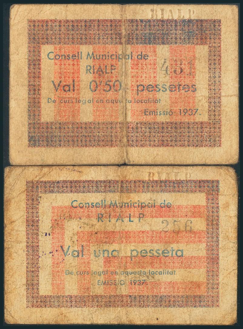 RIALP (LERIDA). 50 Cents and 1 Peseta. 1937. (González: 9593/94). rare. Fine.