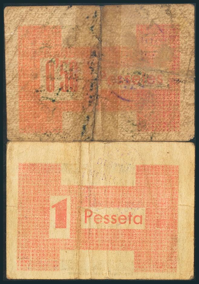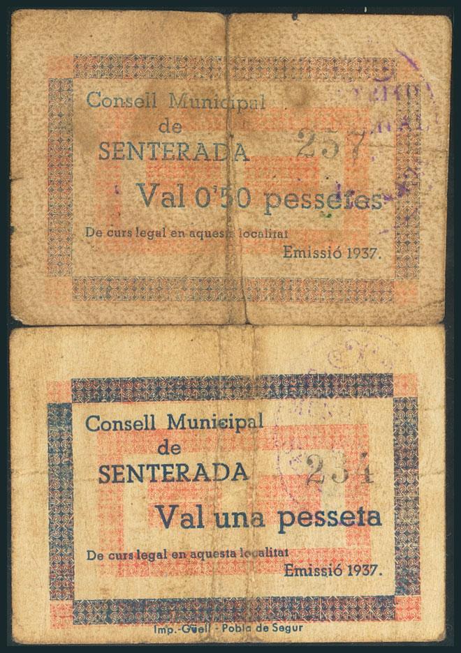 SENT (LERIDA). 50 Cents and 1 Peseta. 1937. (González: 9942/43). very rare Fine.