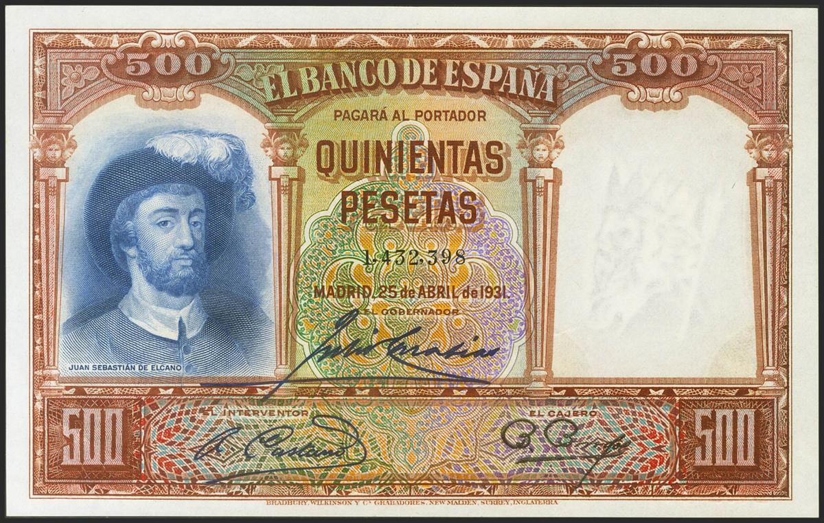 500 pesetas. April 25, 1931. No series. (Edifil 2021: 361). It retains all its original sizing. Almost Uncirculated.
