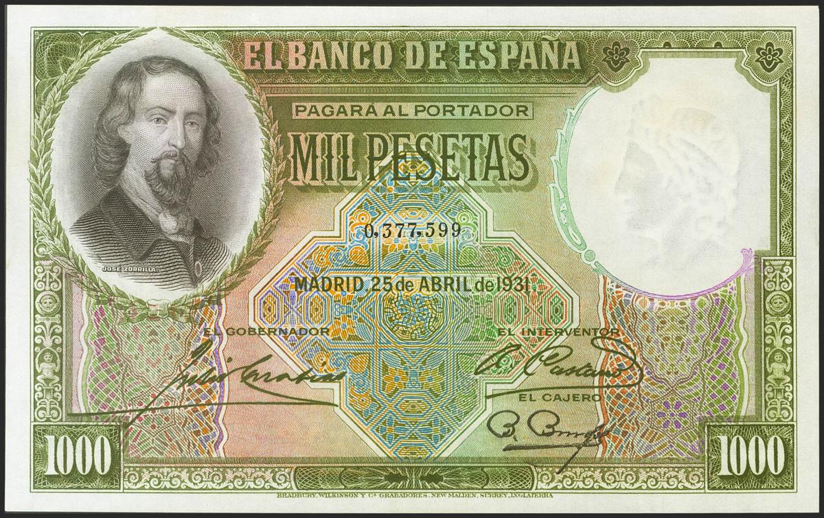 1000 pesetas. April 25, 1931. No series. (Edifil 2021: 362). Slight shades, retains all its original finish. Almost Uncirculated.