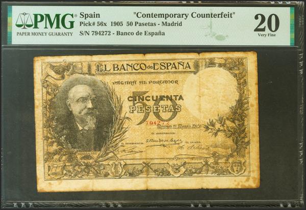 50 pesetas. March 19, 1905. False of the Period. No serie. (Edifil 2021: 312F). very rare Almost Very Fine. PMG20 package.