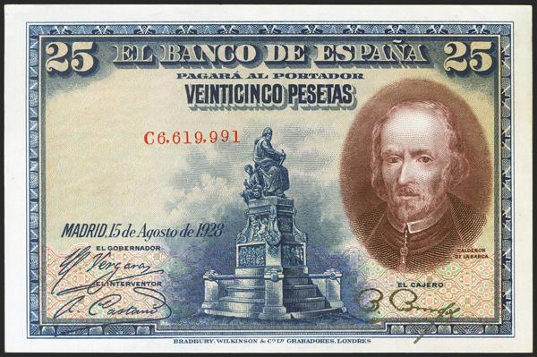 25 pesetas. August 15, 1928. Series C. (Edifil 2021: 353). original sizing Almost Uncirculated.