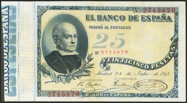 25 pesetas. August 15, 1928. Series B. (Edifil 2021: 353). original sizing Almost Uncirculated.