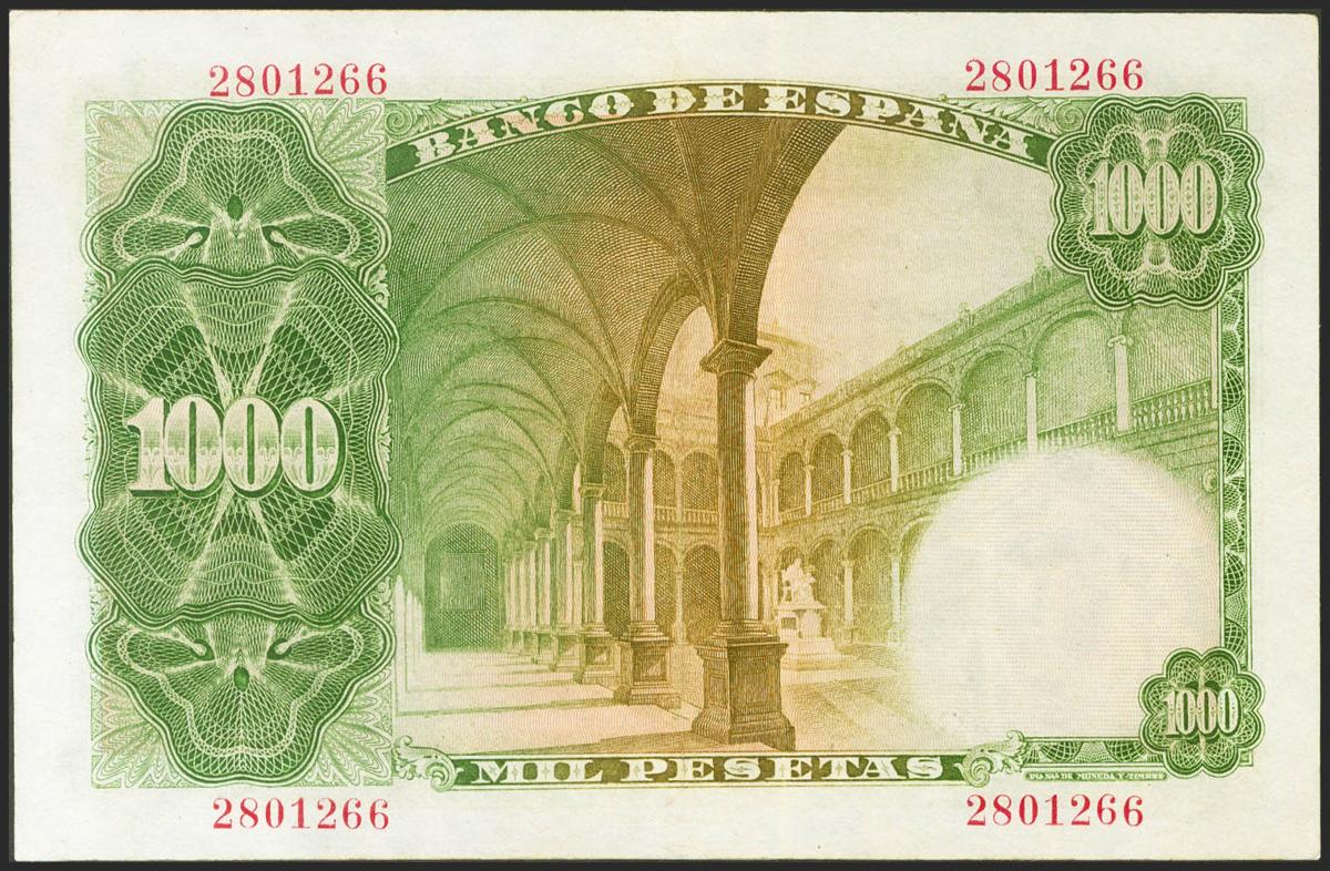 1000 pesetas. February 19, 1946. No series. (Edifil 2021: 453). Minimally repaired. Almost Extremely Fine.