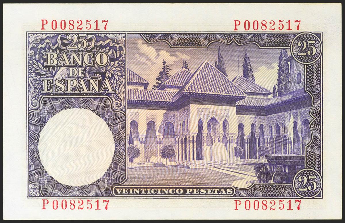 25 pesetas. July 22, 1954. Series P, last series. (Edifil 2021: 467b). It retains much of its original size. Extremely Fine.
