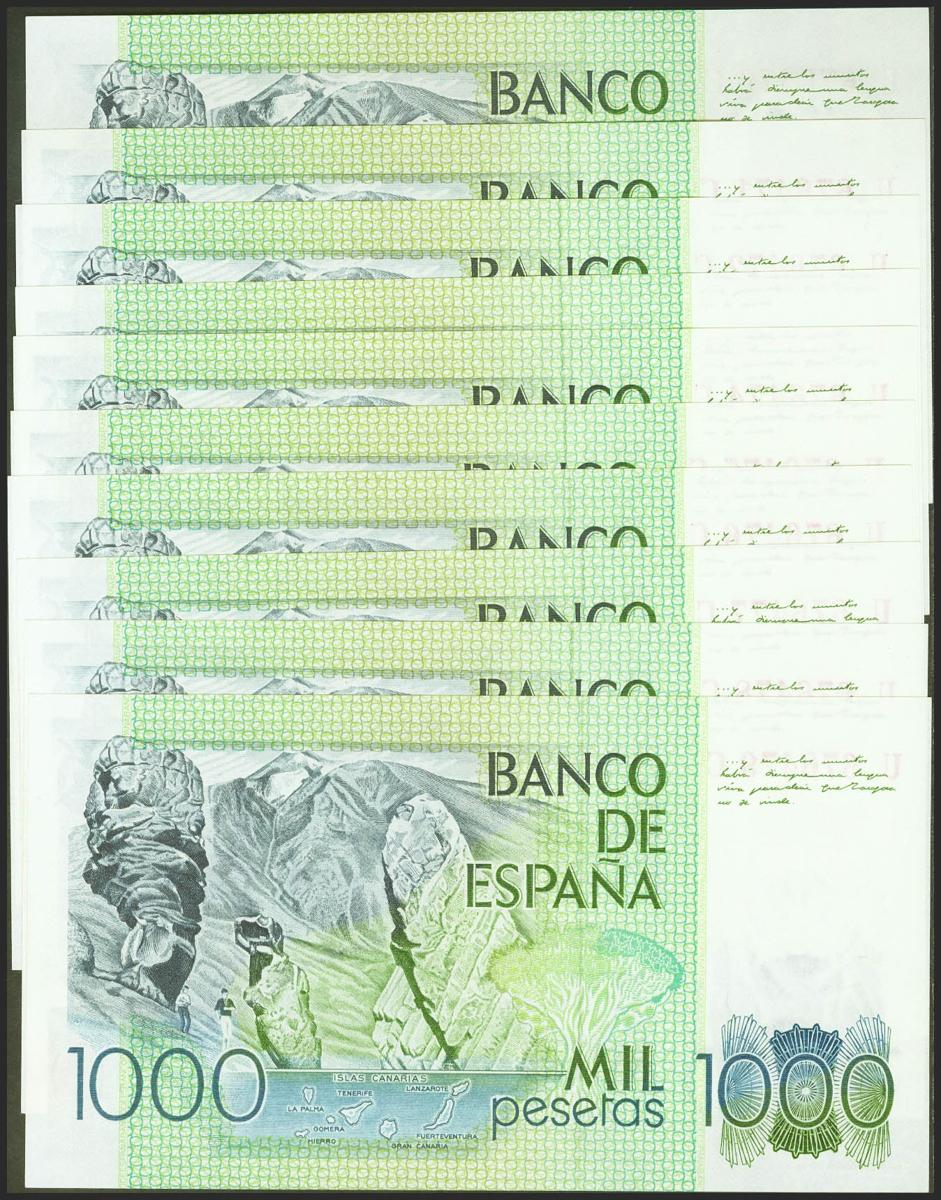 Set of 9 correlative banknotes of 1000 Pesetas, issued on October 23, 1979, all of them with the UC series (Edifil 2021: 477a). Extremely Fine.