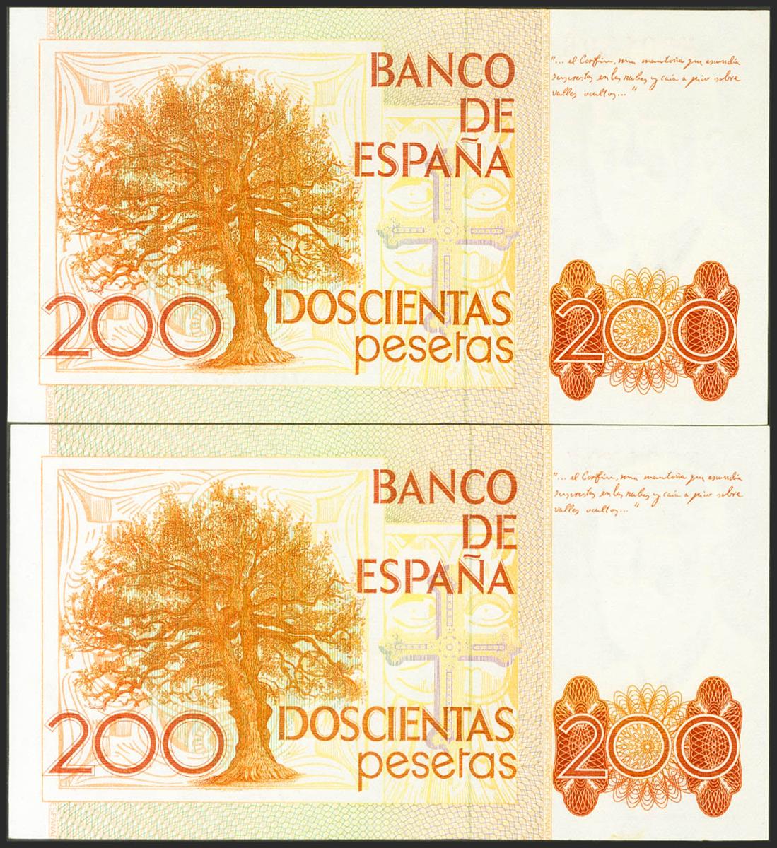 English 200 pesetas. September 16, 1980. Correlative couple. No serie. (Edifil 2017: 480). Uncirculated.