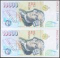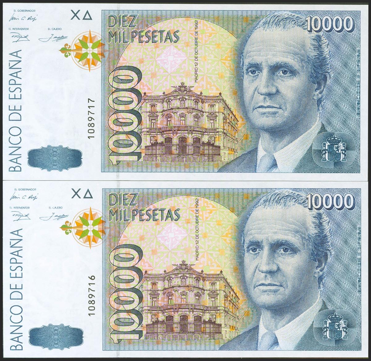 10,000 pesetas. October 12, 1992. Correlative couple. No serie. (Edifil 2021: 485). Uncirculated.