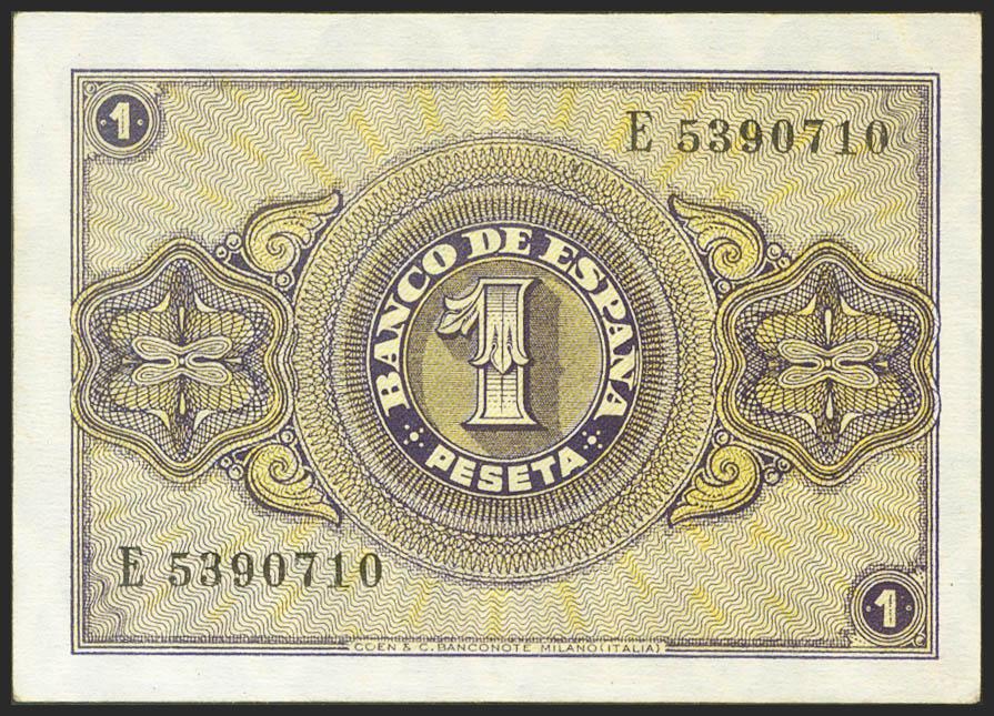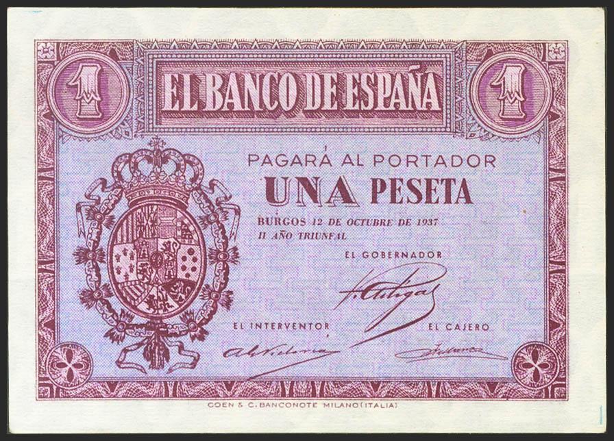 1 peseta. October 12, 1937. Series E. (Edifil 2021: 425a). Unusual, original sizing. Almost Uncirculated.