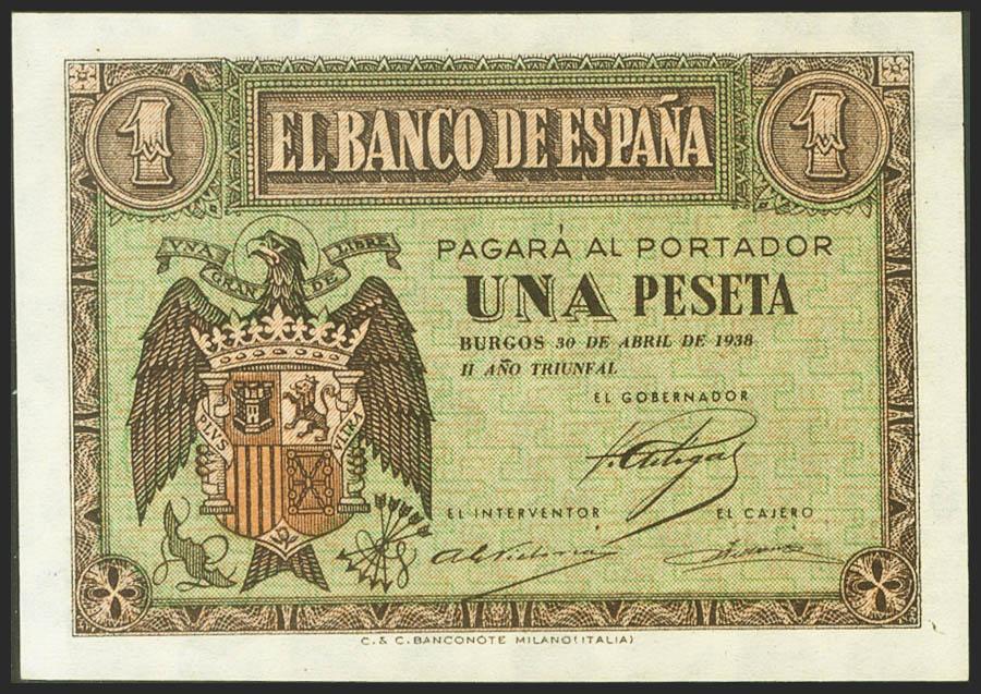1 peseta. April 30, 1938. Series G. (Edifil 2021: 428a). original sizing Uncirculated.
