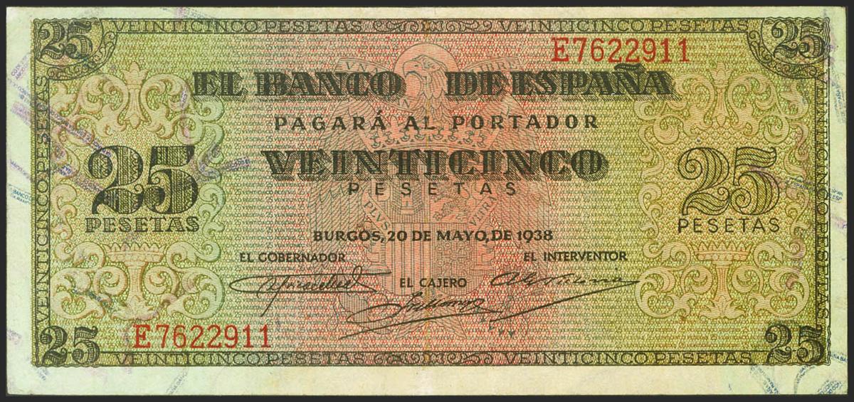 25 pesetas. May 20, 1938. Series E. (Edifil 2021: 430a). It presents part of its original sizing. Extremely Fine.