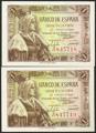 1 peseta. June 15, 1945. Correlative couple. No serie. (Edifil 2021: 448). original sizing Uncirculated.