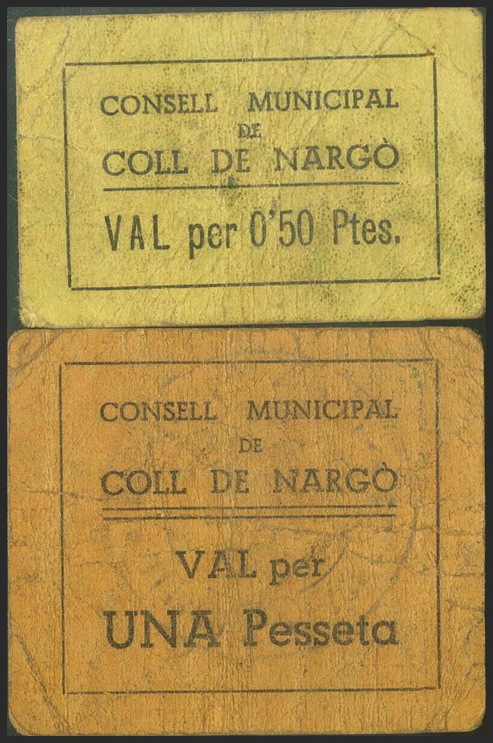 English COLL DE NARGO (LERIDA). 50 Cents and 1 Peseta. (1937ca). (González: 7627/28). Very rare complete series. Almost Very Fine.