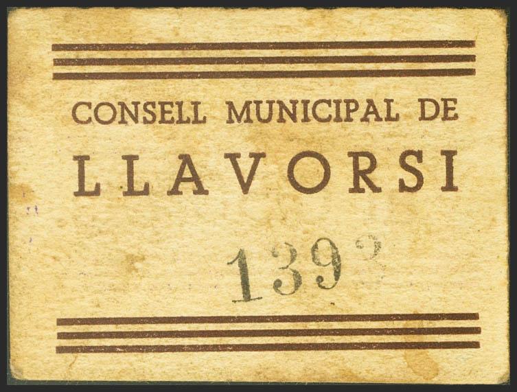 English LLAVORSI (LERIDA). 50 cents. (1937ca). (Gonzalez: 8356). Rare. Good Very Fine.