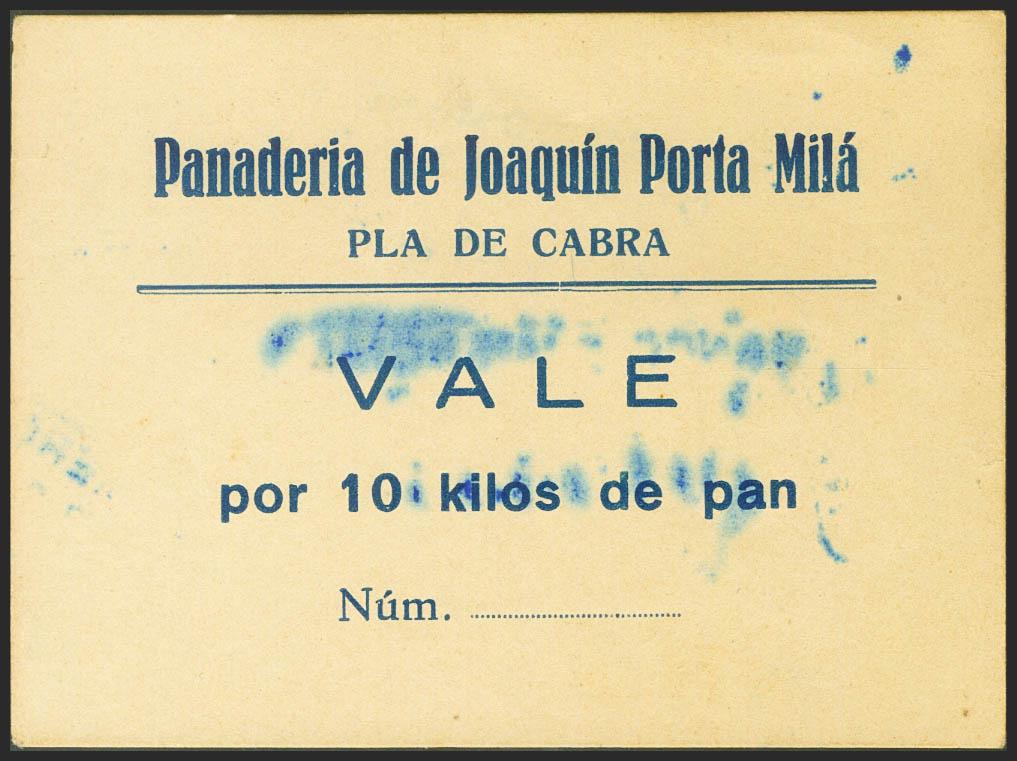 PLA DE GOAT (TARRAGONA). It is worth 10 kilos of bread from the Joaquín Porta Milá bakery. Almost Uncirculated.