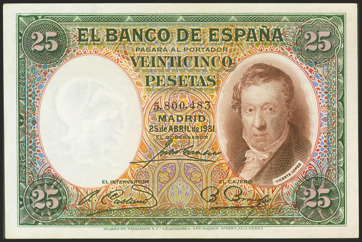 25 pesetas. April 25, 1931. No series. (Edifil 2021: 358). Rare in this quality, it retains all its original sizing. Uncirculated.