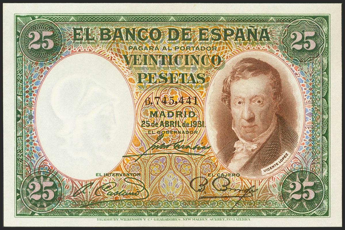 25 pesetas. April 25, 1931. No series. (Edifil 2021: 358). original sizing Good Extremely Fine.
