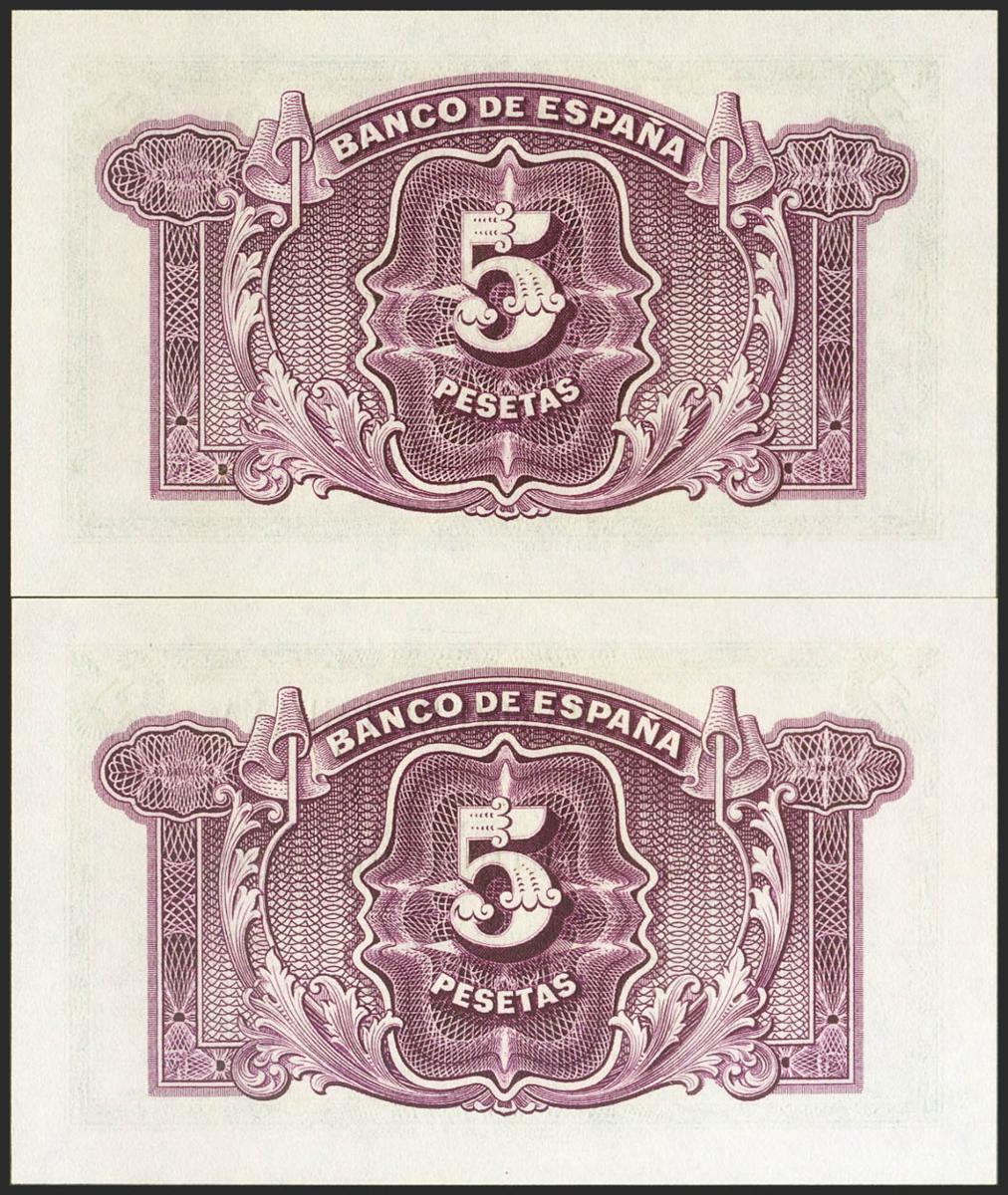5 pesetas. 1935. Correlative couple. Silver Certificate. Series D. (Edifil 2021: 363a). It retains all its original sizing. Uncirculated.