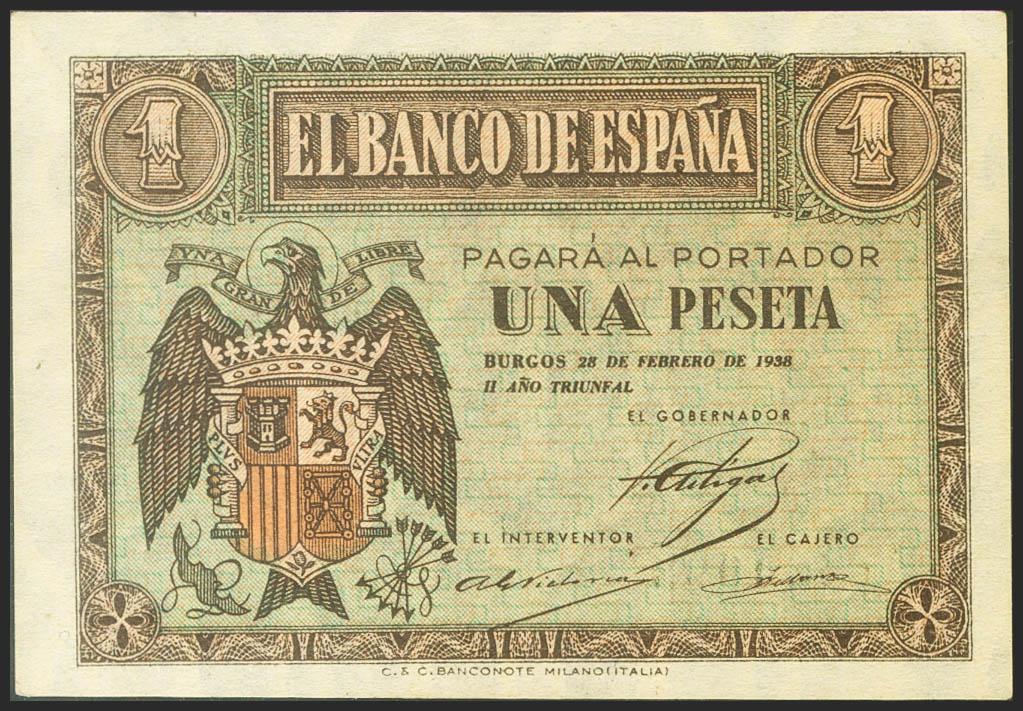English 1 peseta. February 28, 1938. Series F. (Edifil 2021: 427a). original sizing Uncirculated.