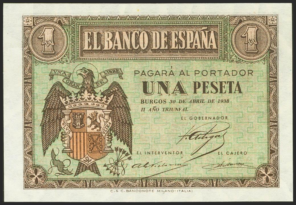 1 peseta. April 30, 1938. Series E. (Edifil 2017: 428a). original sizing Uncirculated.