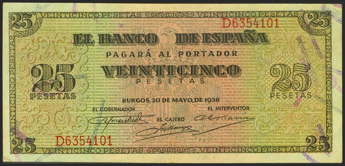 25 pesetas. May 20, 1938. Series D. (Edifil 2021: 430a). It retains part of its original size. Extremely Fine.