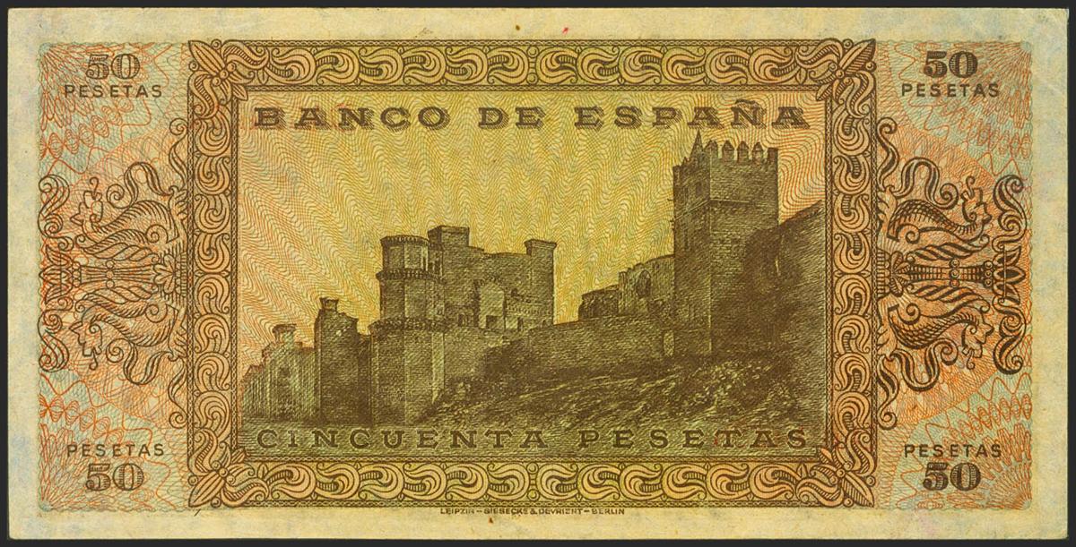 50 pesetas. May 20, 1938. Series D. (Edifil 2021: 431a). Original sizing, natural wrinkles in the paper (this is the only reason to "remove" the Uncirculated). EBC+++.