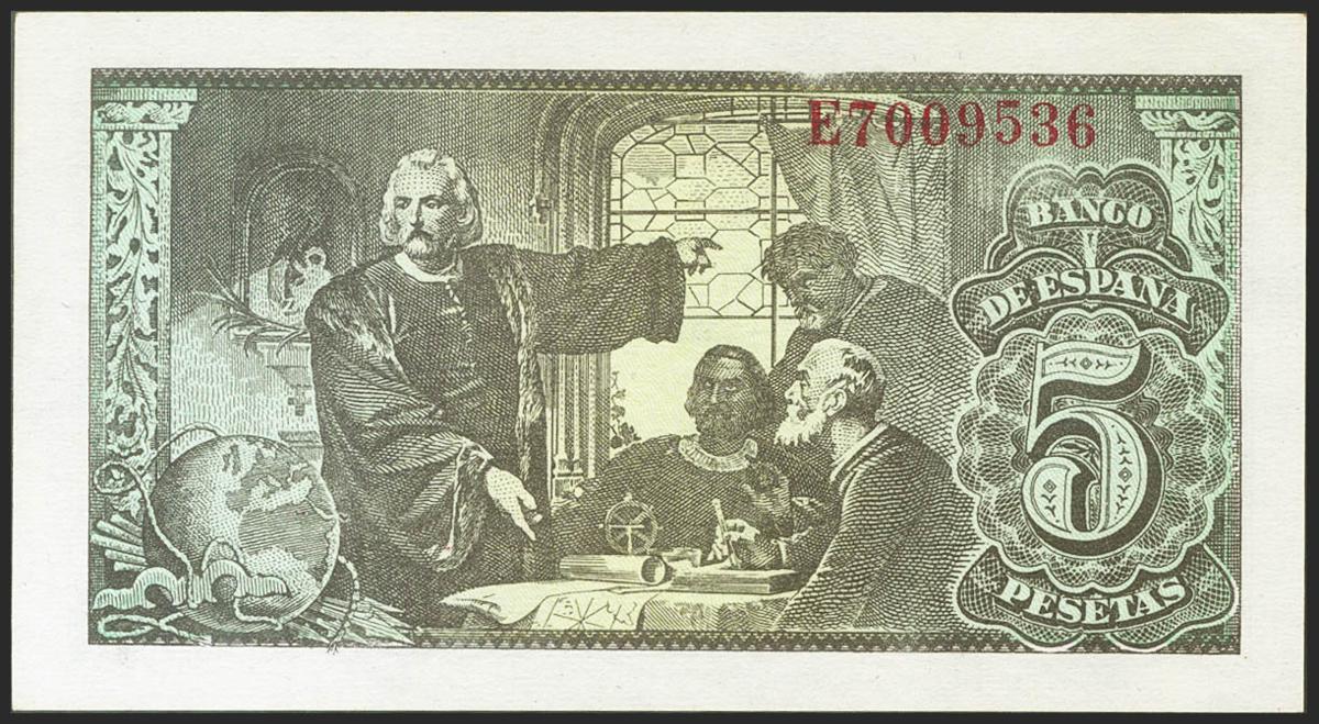 English 5 pesetas. February 13, 1943. Series E. (Edifil 2021: 446a). original sizing Almost Uncirculated.