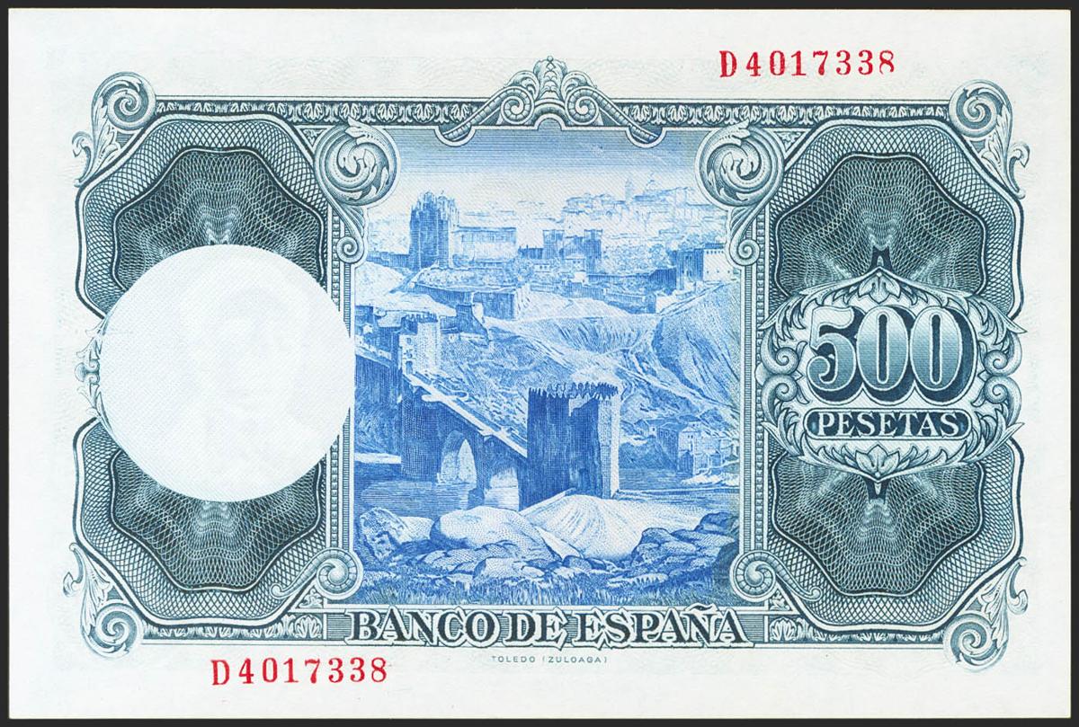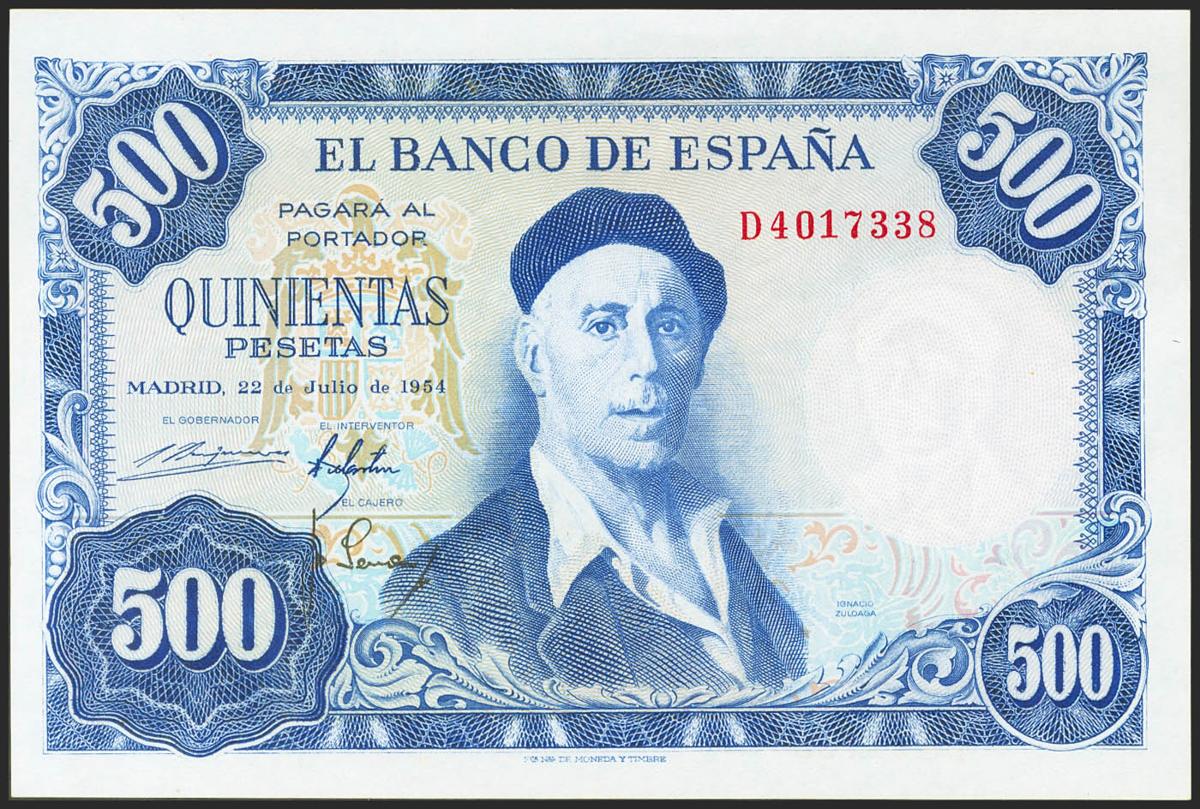English 500 pesetas. July 22, 1954. Series D. (Edifil 2021: 468b). It retains all its original sizing. Almost Uncirculated.
