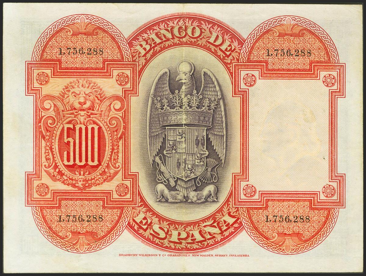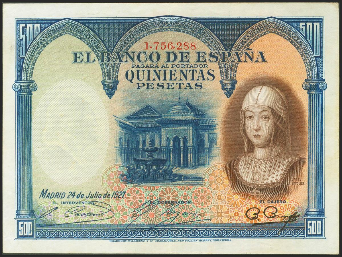 500 pesetas. July 24, 1927. Without series and numbering after 1602000. (Edifil 2021: 352). It retains much of its original sizing and staple point. Almost Extremely Fine.