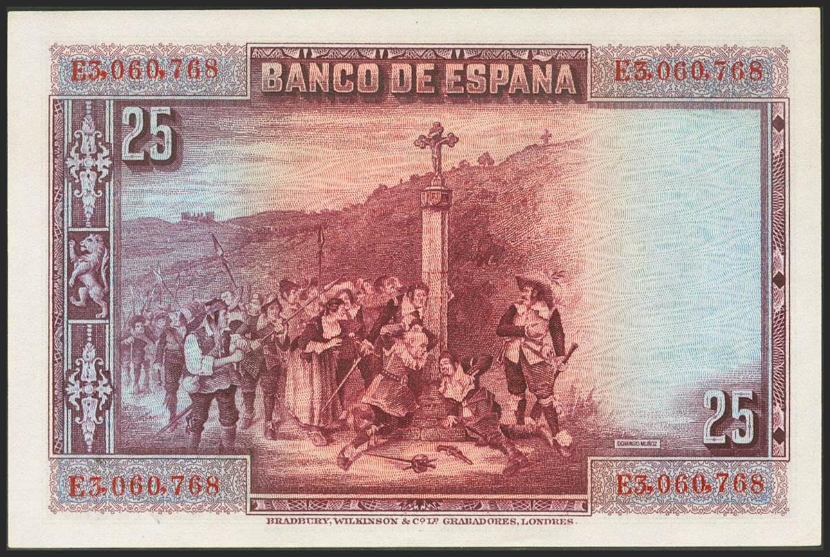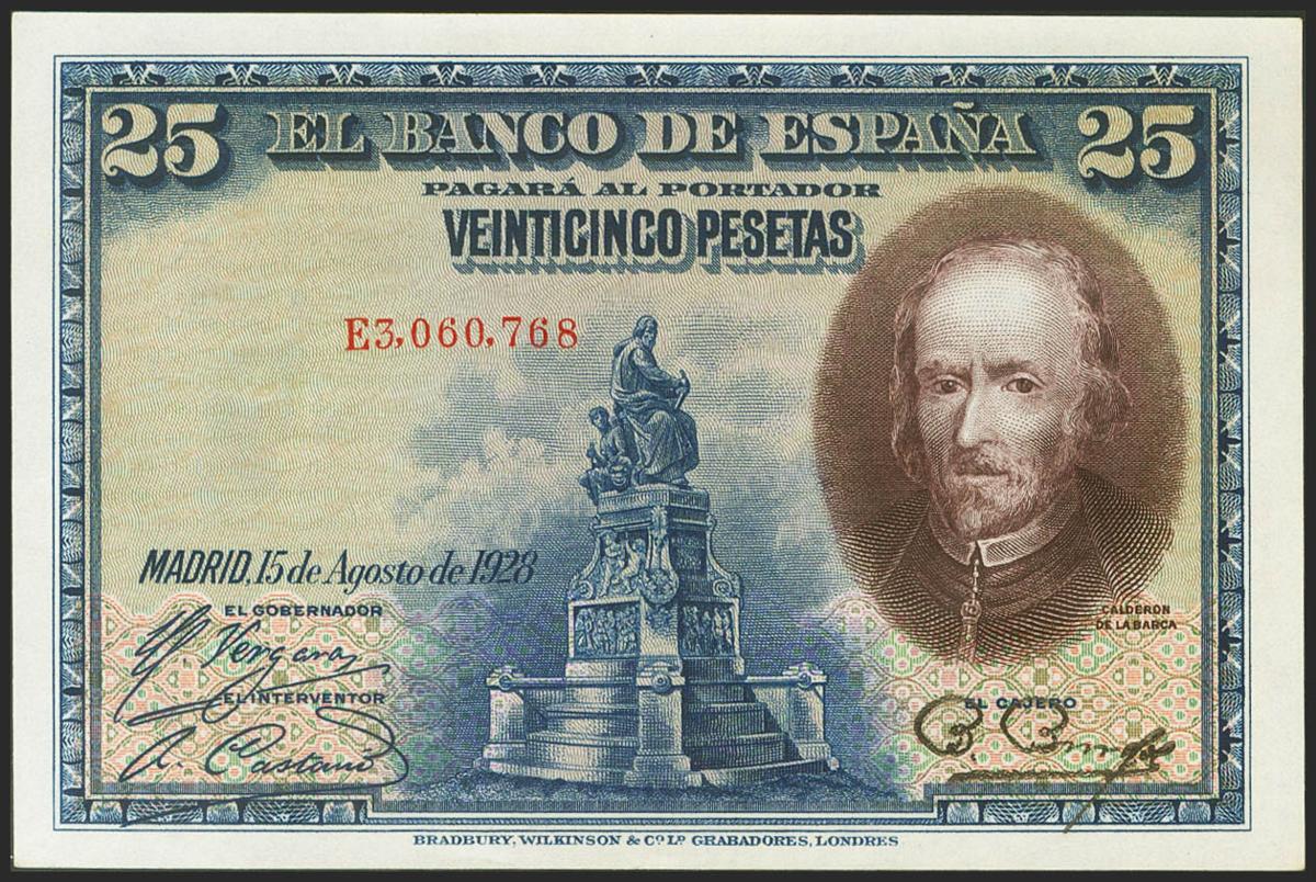 25 pesetas. August 15, 1928. Series E. (Edifil 2021: 353). original sizing Uncirculated.