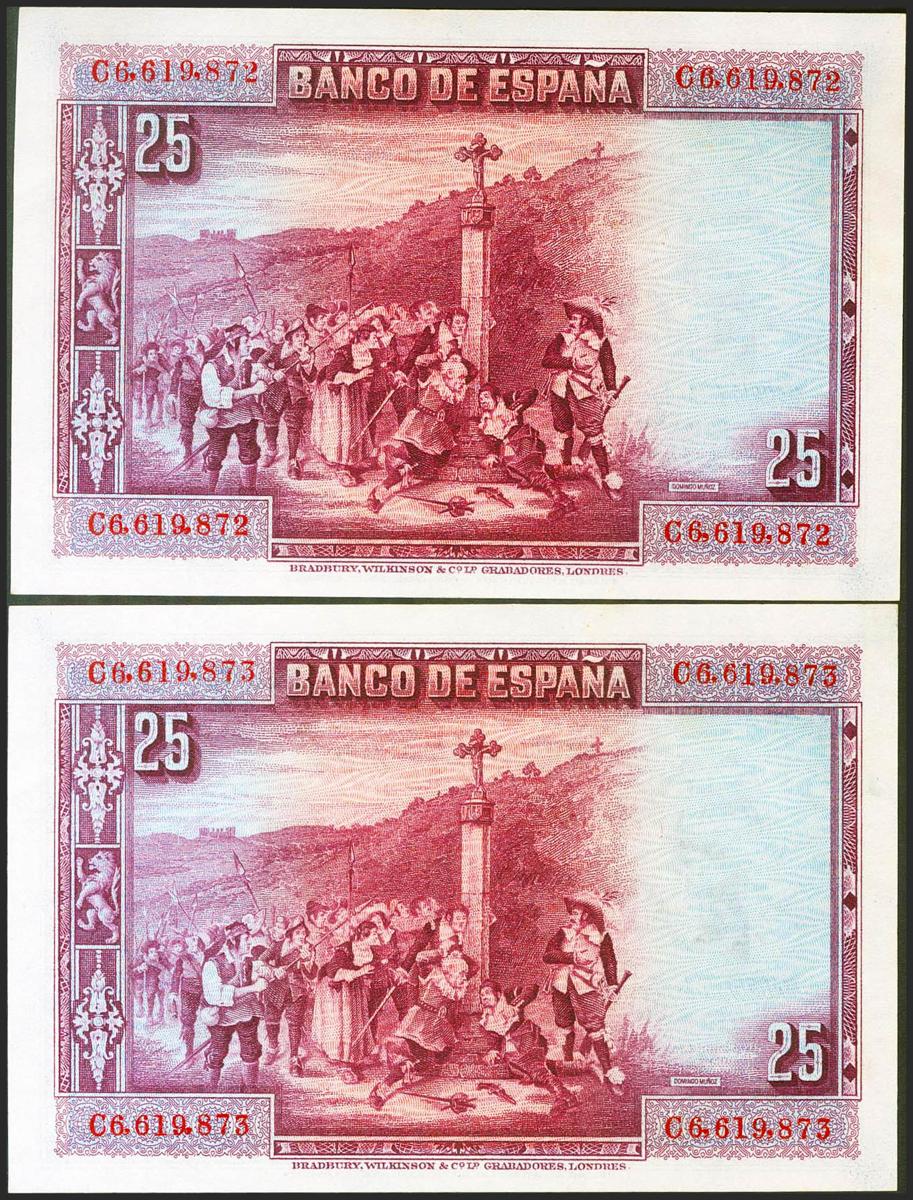 25 pesetas. August 15, 1928. Correlative couple. Series C. (Edifil 2021: 353). original sizing Almost Uncirculated.