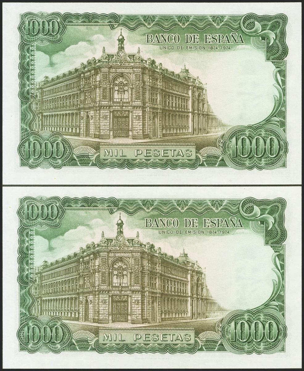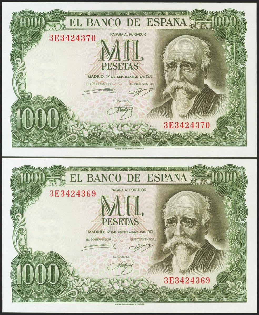 1000 pesetas. September 17, 1971. Correlative couple. 3E series. (Edifil 2021: 474c). It retains all its original sizing. Uncirculated.