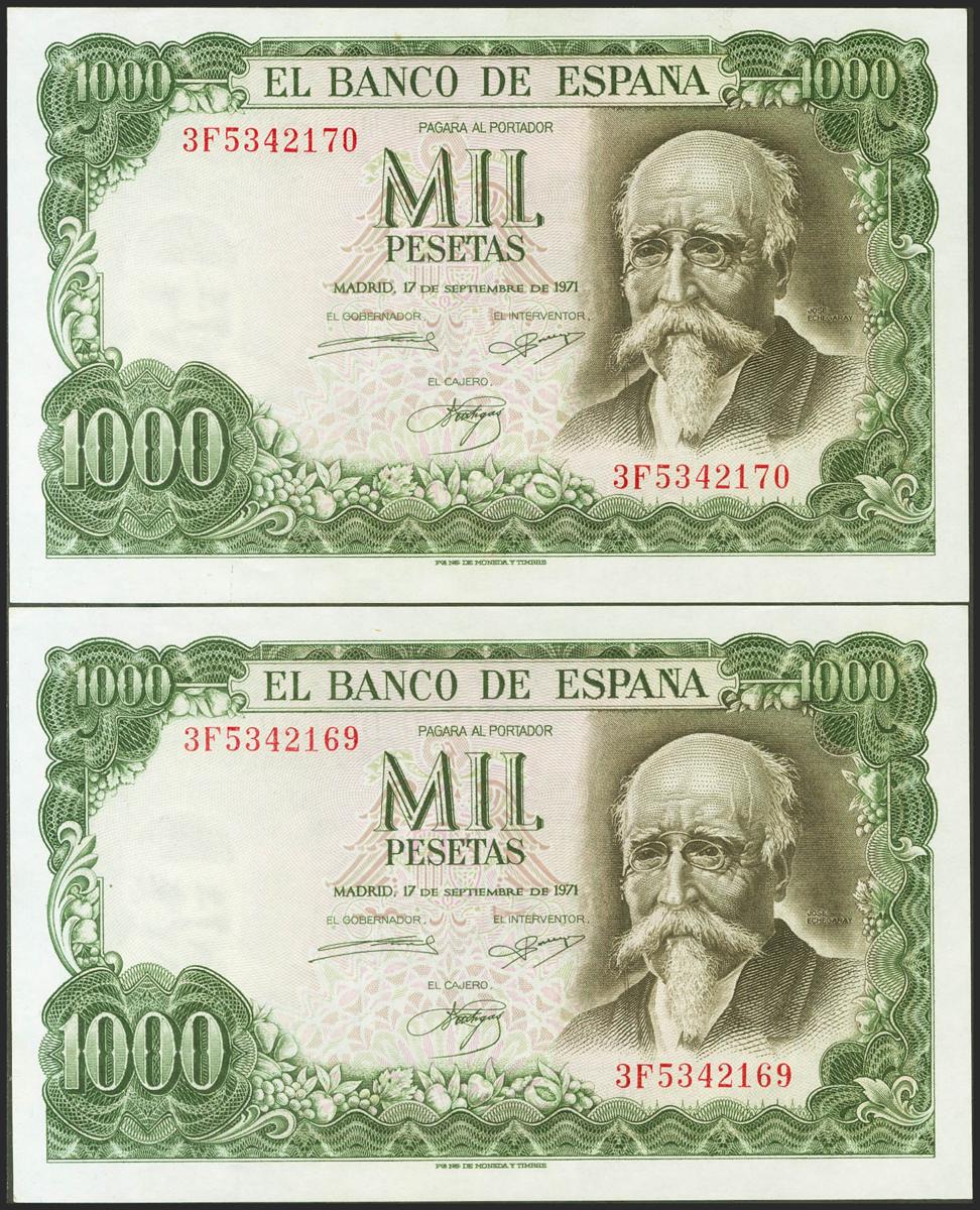1000 pesetas. September 17, 1971. Correlative couple. 3F series. (Edifil 2021: 474c). original sizing EBC+++.