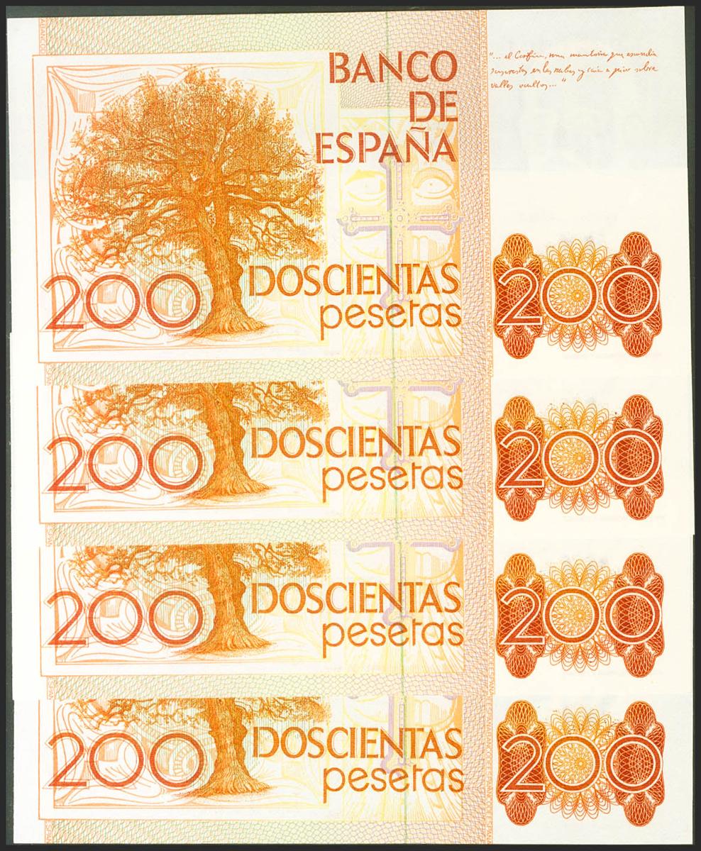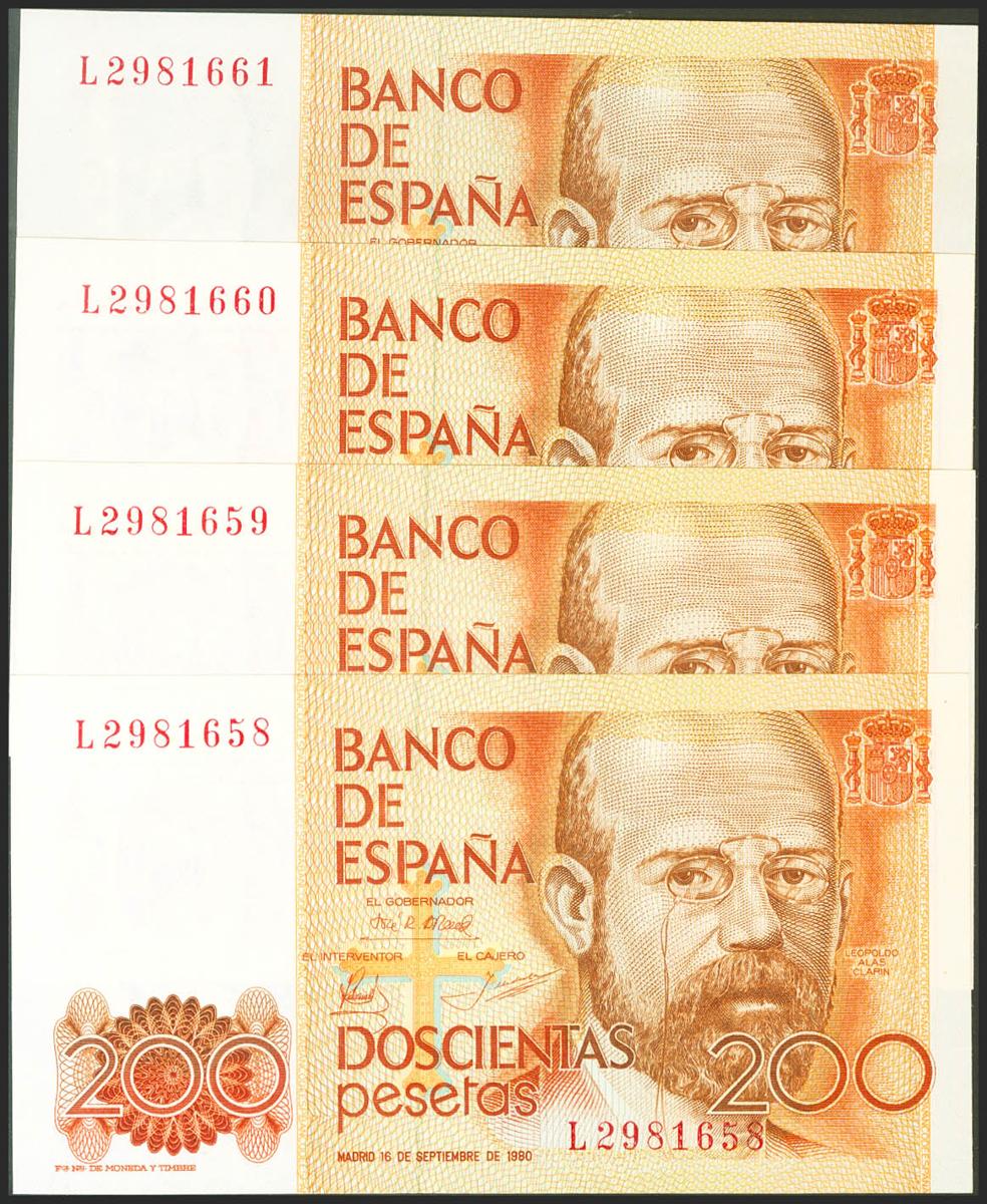 Set of 4 correlative banknotes of 200 Pesetas, issued on September 16, 1980, all of them with the L series (Edifil 2021: 480a). Uncirculated.