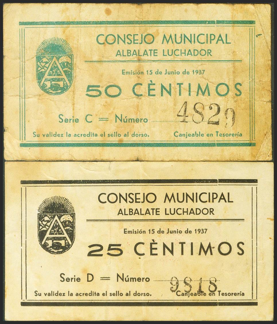 ALBALATE (TERUEL). 25 Cents and 50 Cents. June 15, 1937. (González: 173, 174). unusual. Very Fine.
