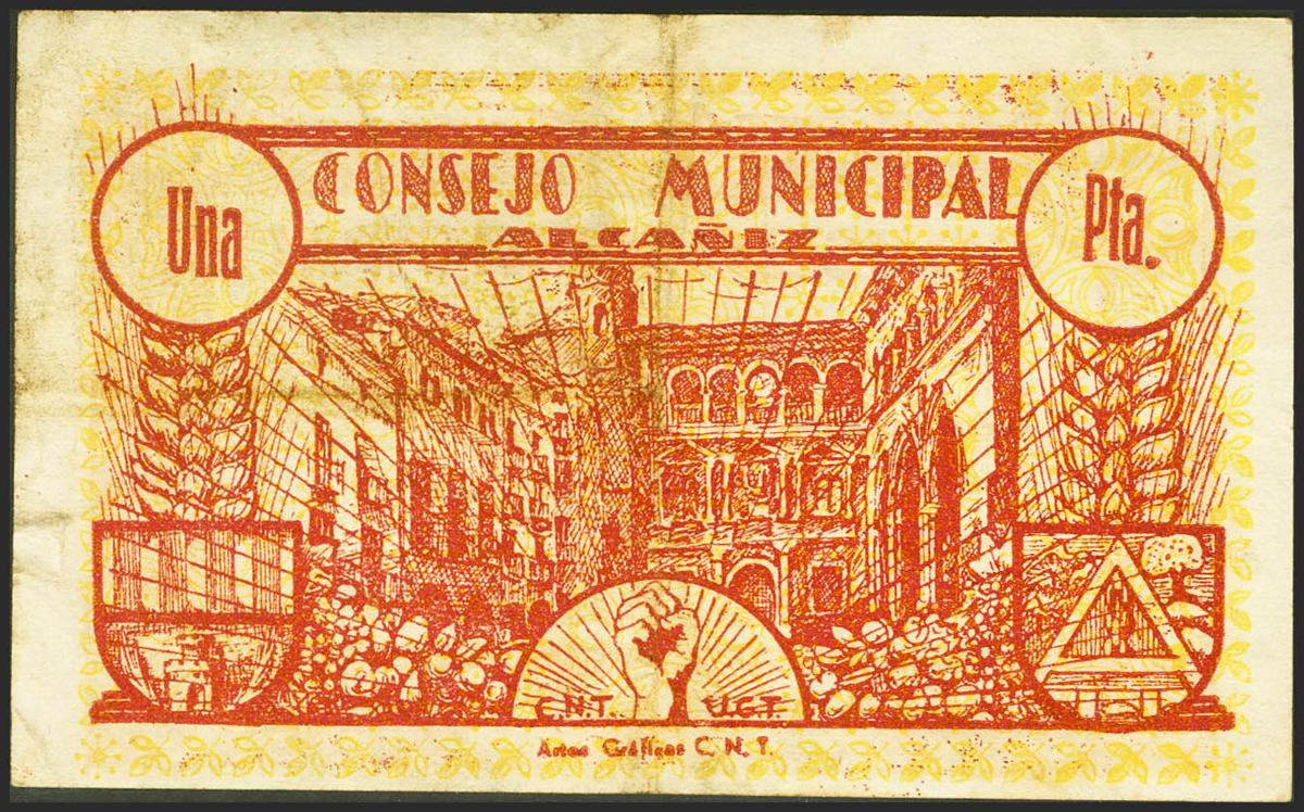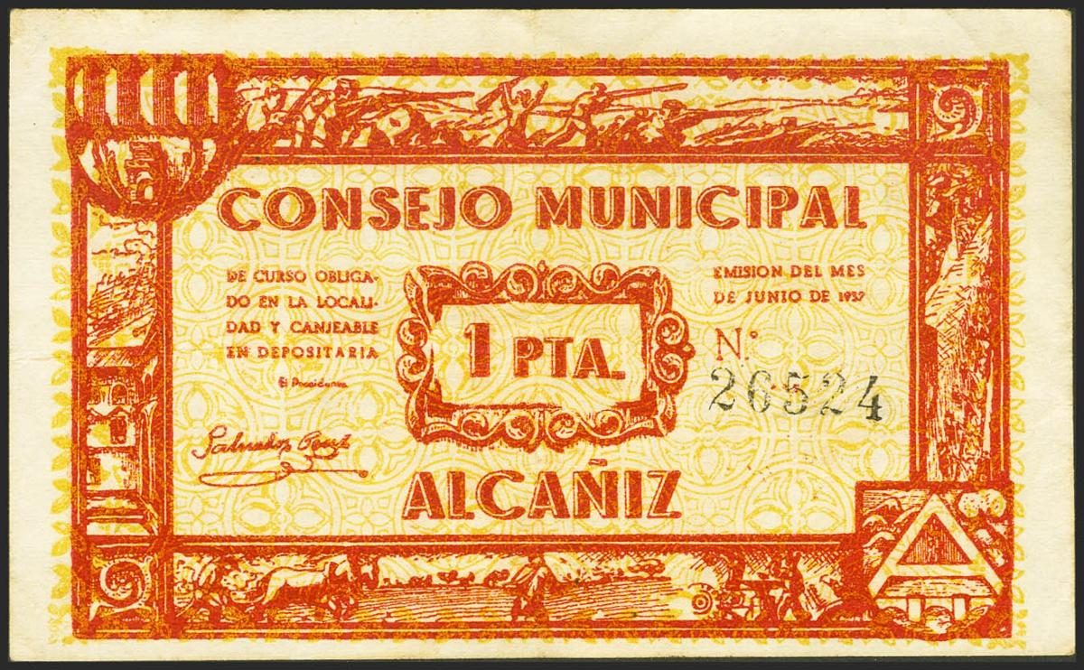 ALCANIZ (TERUEL). 1 peseta. June 1937. (González: 298). Very Fine.