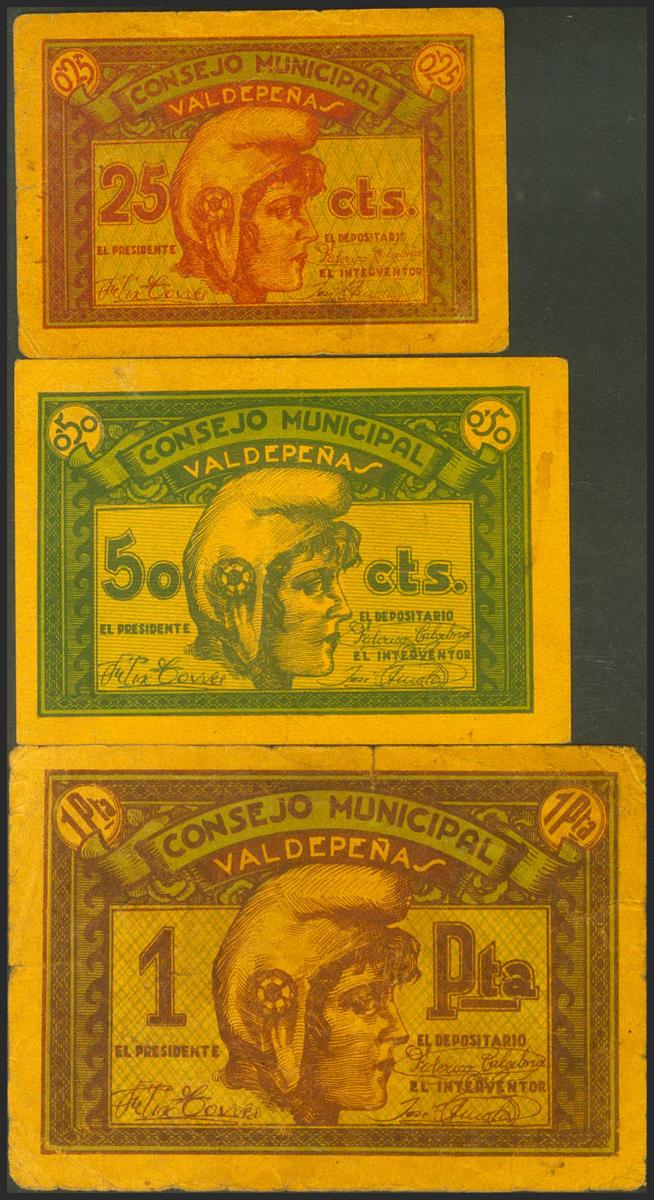English VALDEPEÑAS (ROYAL CITY). Series B, A and A, respectively. (González: 5281/83). Complete series. Very Fine.