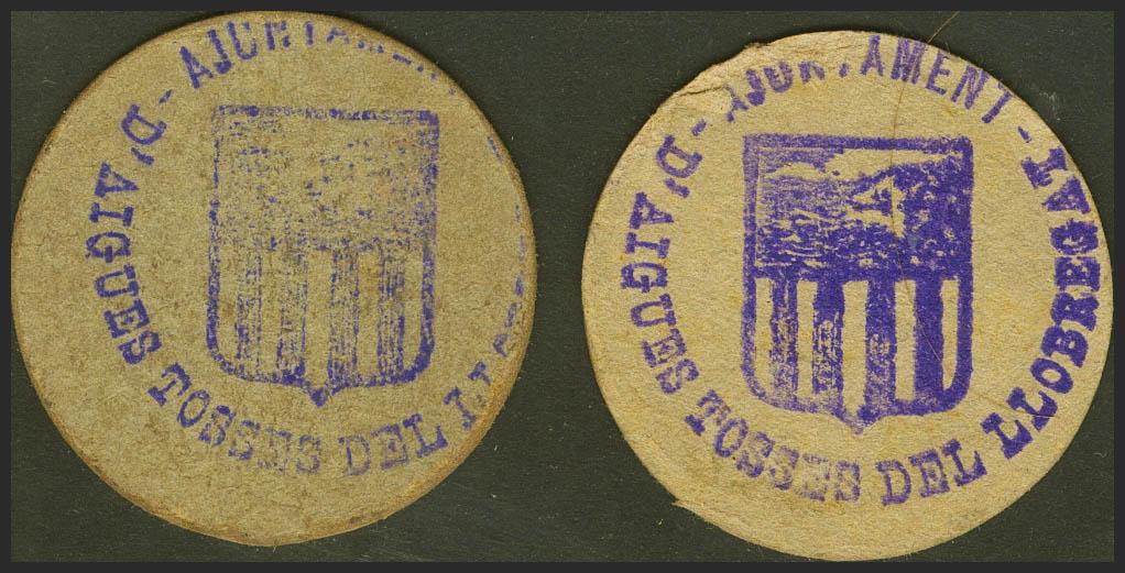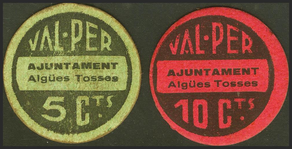 English AIGUESBONES DE LLOBREGAT (BARCELONA). 5 Cents and 10 Cents. (1937ca). (González: 6064/65). Rare complete series. Almost Extremely Fine.