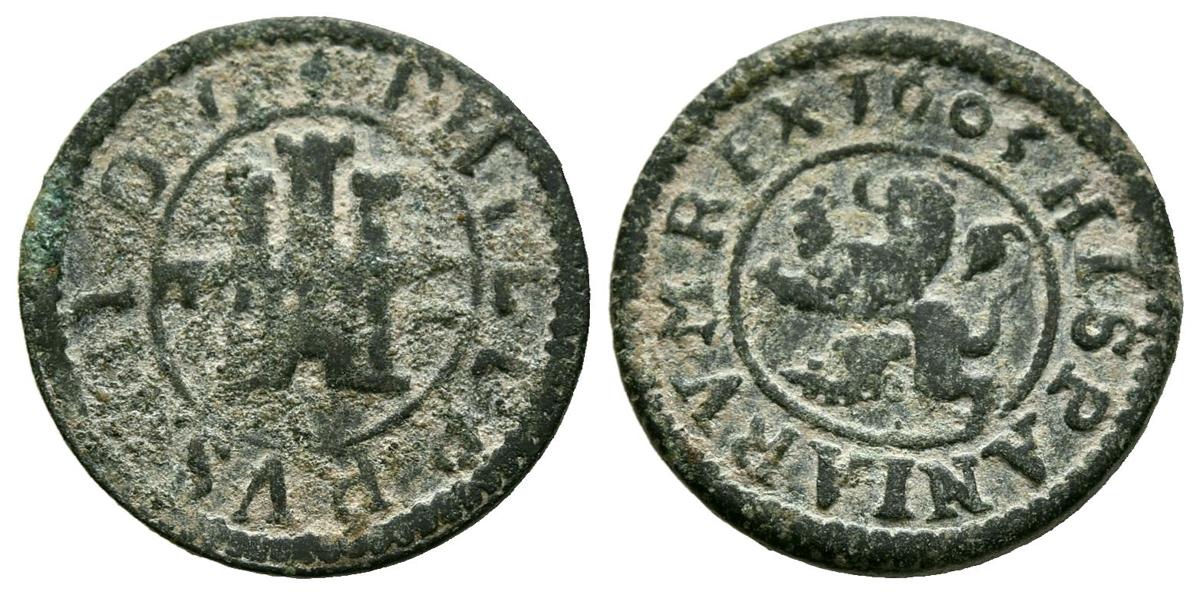 PHILIP III (1598-1621). 2 Maravedis (Ae. 1.41g/16mm). 1603. Segovia. (Cal-2019-185). Horizontal aqueduct. Almost Very Fine.