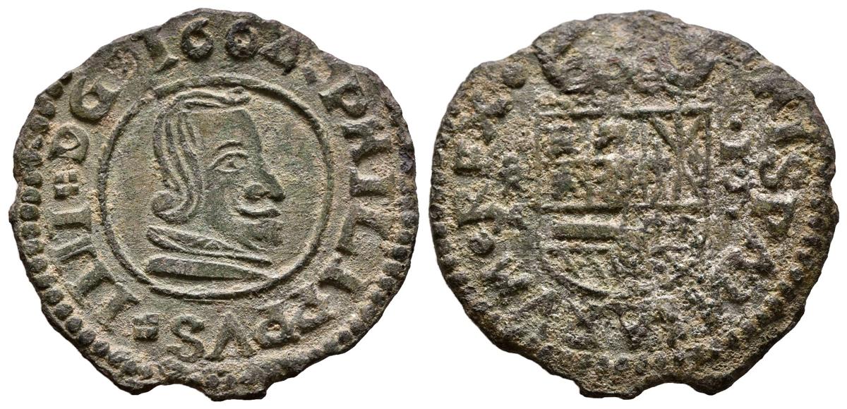 English PHILIP IV (1621-1665). 16 Maravedis. (Ae. 3.01g/20mm). 1662. Trujillo M. (Cal-2019-505). Good Very Fine/ Very Fine.