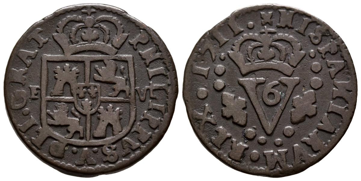 PHILIP V (1700-1746). 1 Sisó (Ae. 6.30g/25mm). 1711. (Cal-2019-13). Very Fine.
