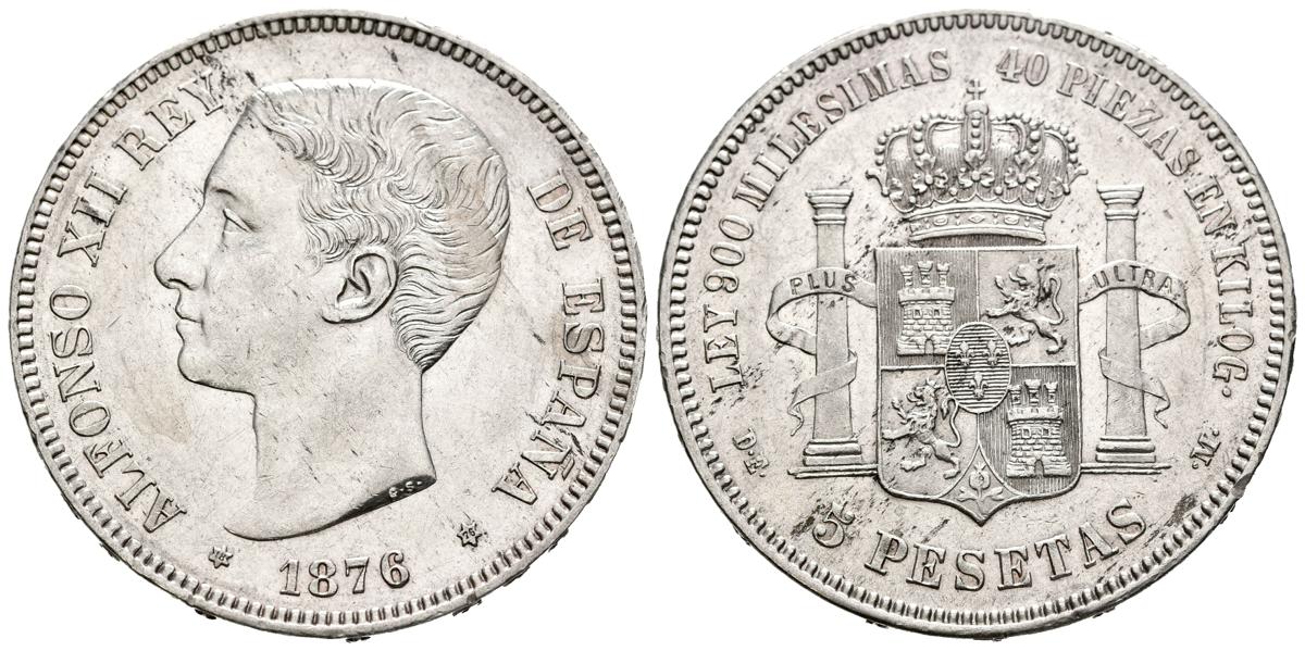 ALFONSO XII (1874-1885). 5 pesetas. (Ar. 24.77g/37mm). 1876 *18-76. Madrid DEM. (Cal-2019-37). Extremely Fine. Cleaning Scratch .
